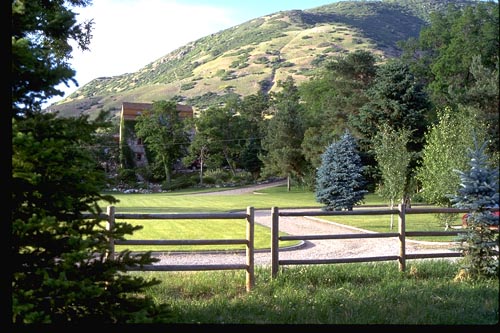 The Rock Mill sits on approximately seven secluded acres in the beautiful foothills of Farmington, Utah. It is fifteen miles from downtown Salt Lake City. This rustic estate adjoins the Wasatch National Forest and affords magnificent views of the valley, mountains and the Great Salt Lake. The grounds include acres of manicured lawn, gardens, ponds, patios and pastures. In addition there is a corral and stable for horses. Numerous shade and fruit trees enchance the beauty of this tranquil property. It is the most significant LDS historical property in private hands, and it has the potential to be the grandest estate in Utah.